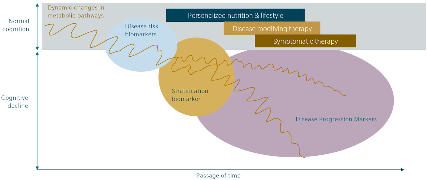 A better understanding of the early metabolic changes associated with the development of Alzheimer’s Disease may enable the discovery of new targets. Metabolomics can detect small biological changes, well before the disease becomes clinically apparent. This level of biological sensitivity not only facilitates the discovery of predictive biomarkers, but correspondingly, enables earlier treatment administration, and the use of more effective interventions that target the earliest phase of disease pathophysiology.