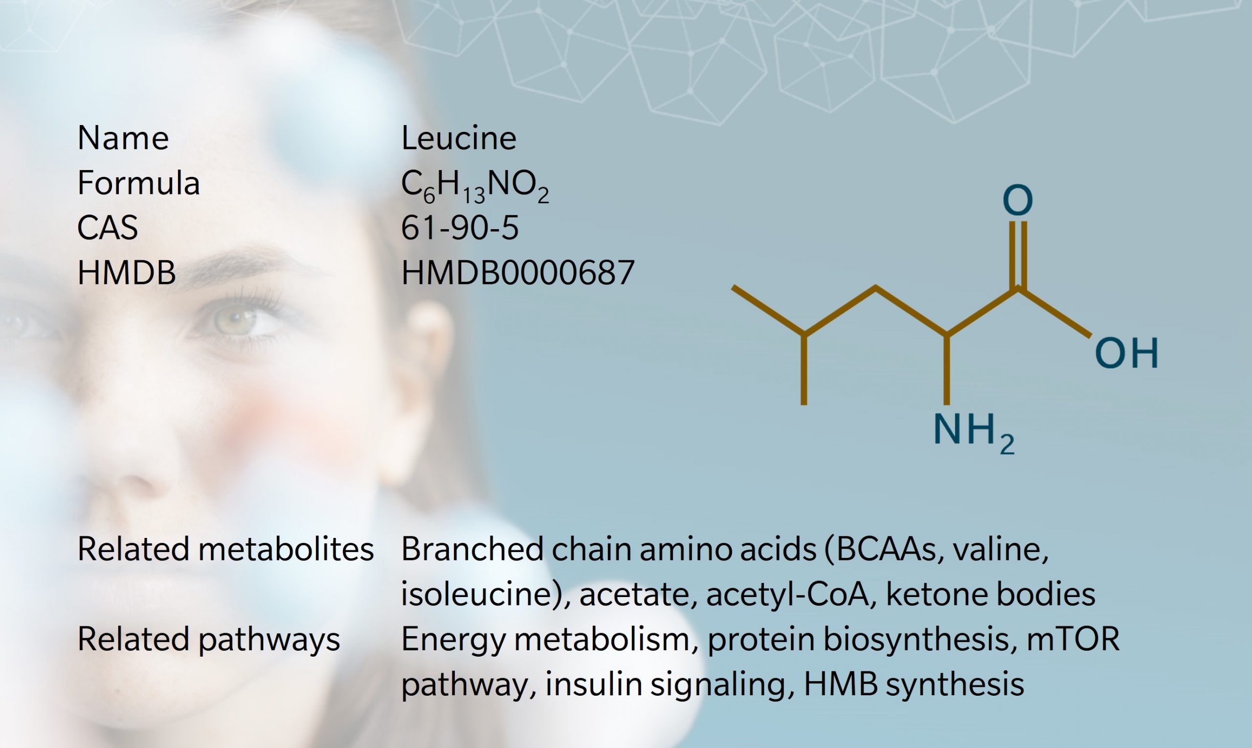 Leucine is the most abundant branched chain amino acid (BCAA) found in animal and plant proteins. It plays an important role in protein synthesis and metabolic function, and is sometimes used as a dietary supplement or flavor enhancer.