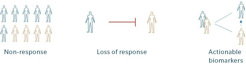 While such approaches are undoubtedly of great value, high rates of primary and/or acquired resistance remain a problem. This can be attributed to pathophysiological complexities that such markers do not properly consider. Tumor biology consists of much more than single oncogenic drivers, and the immune system is much too complex to determine by a single factor. (For more information about the pathophysiological process at play in oncology,